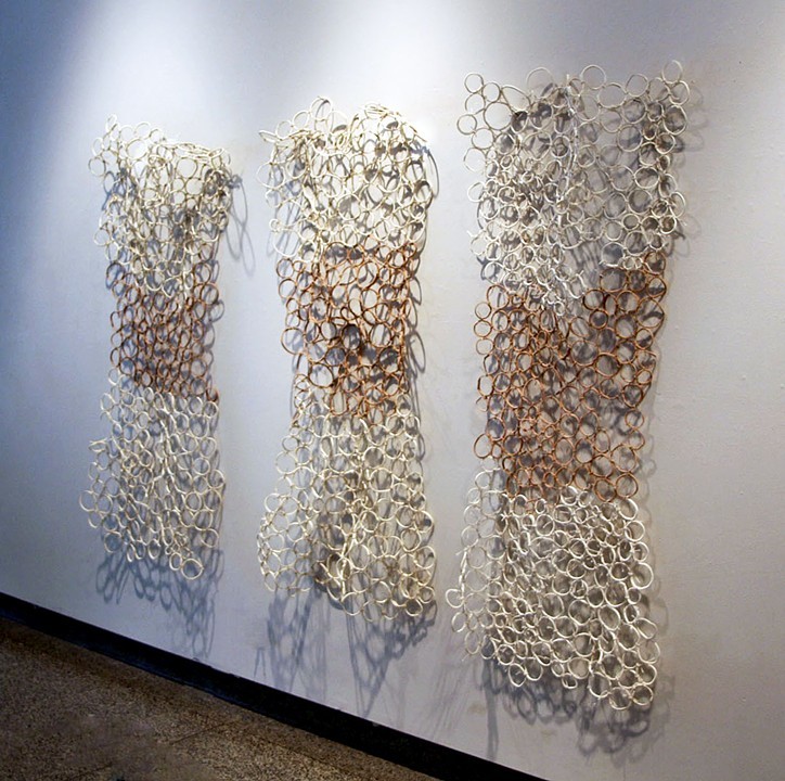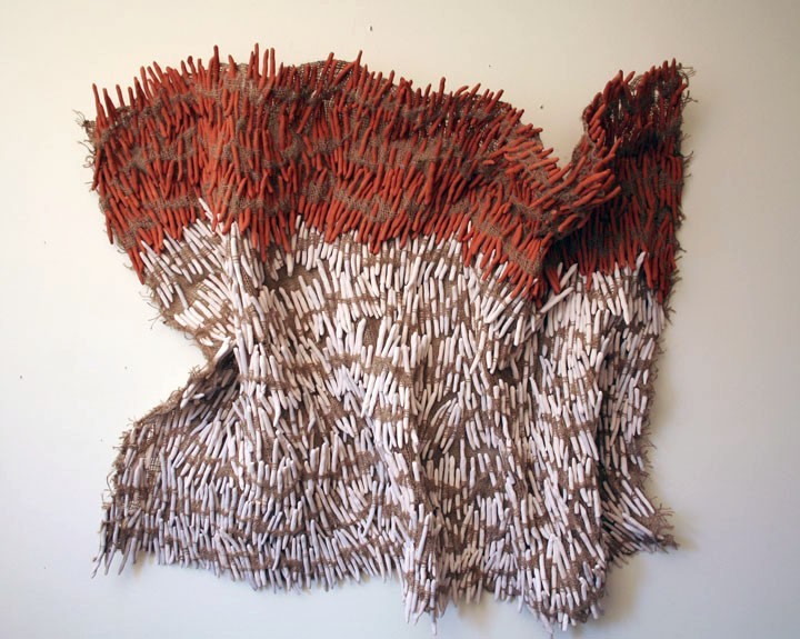 Ashoebi II. Ceramic and burlap. 50"x90"x7". 2008