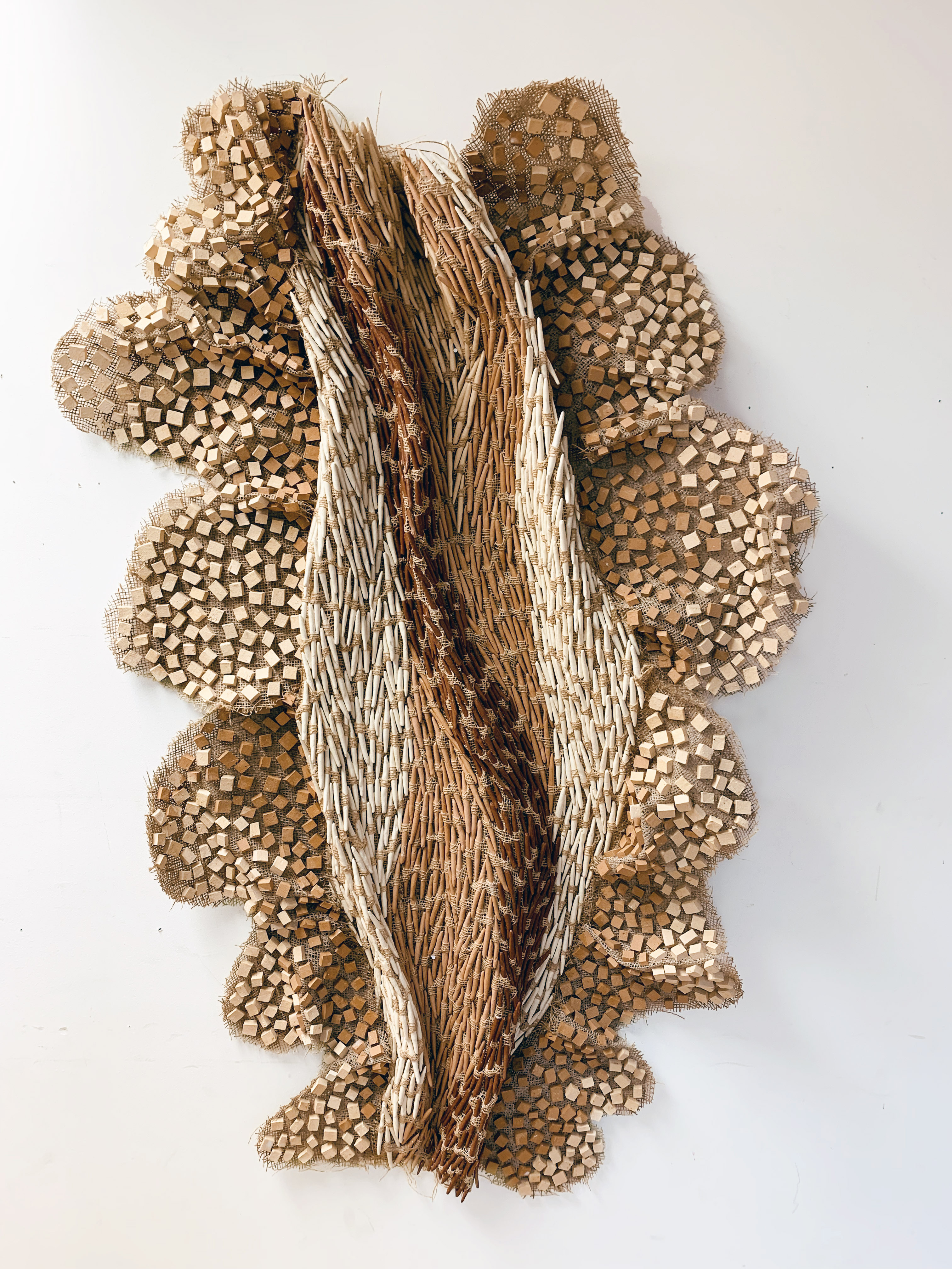 Bountiful Pleasures. Clay and Burlap. 48"x54"x4". 2022