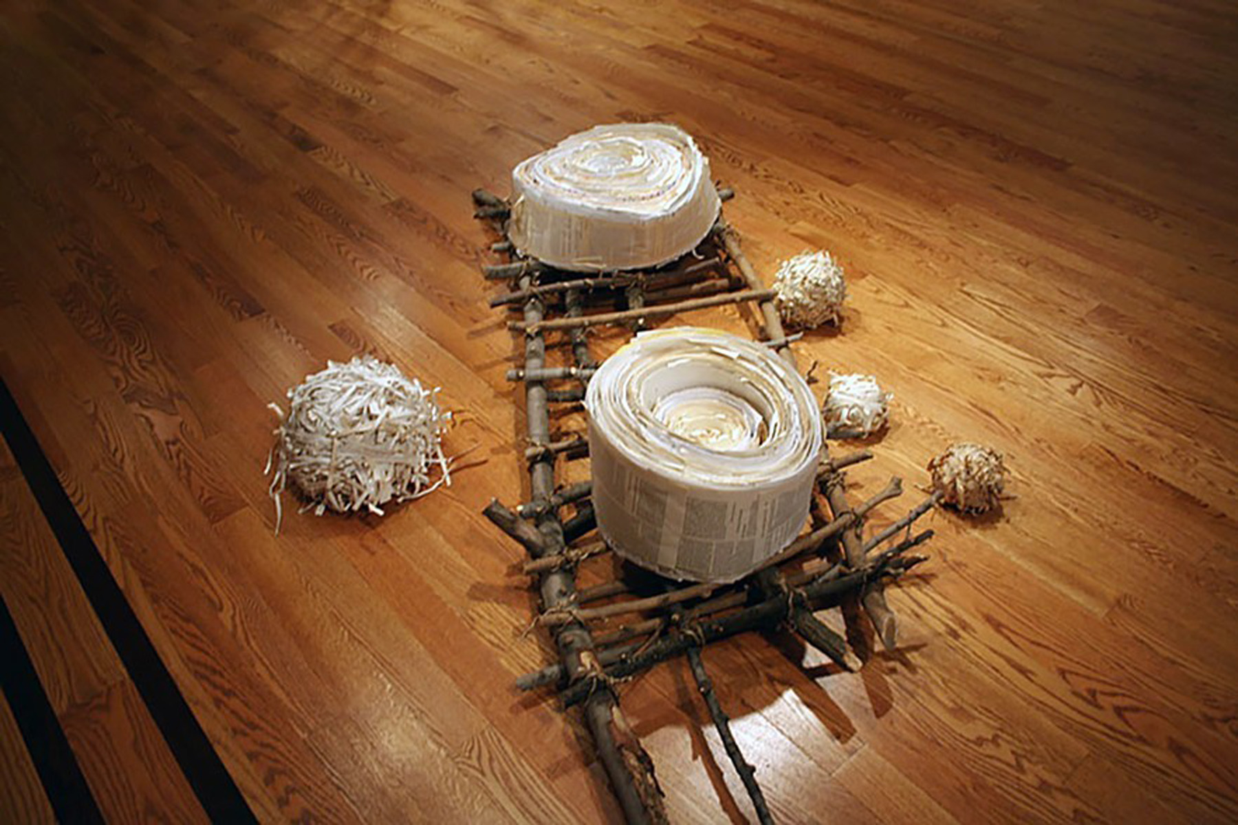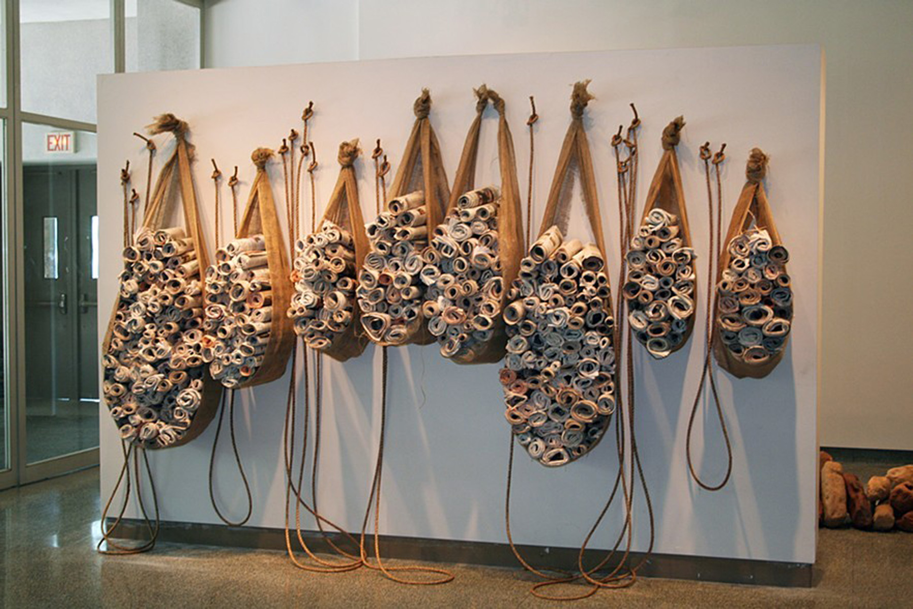 Slings. Newspaper, burlap, and rope. 12'x16'x2'. 2006