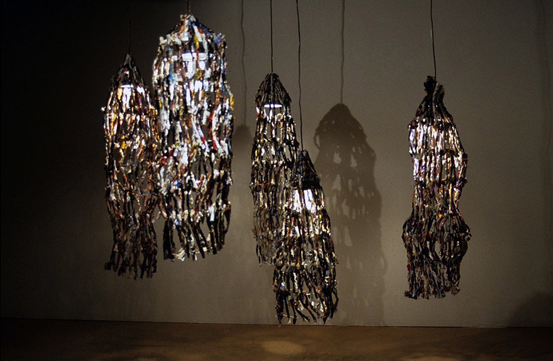 Lamps I. Magazines, wire and light. Varied dimension. 2004