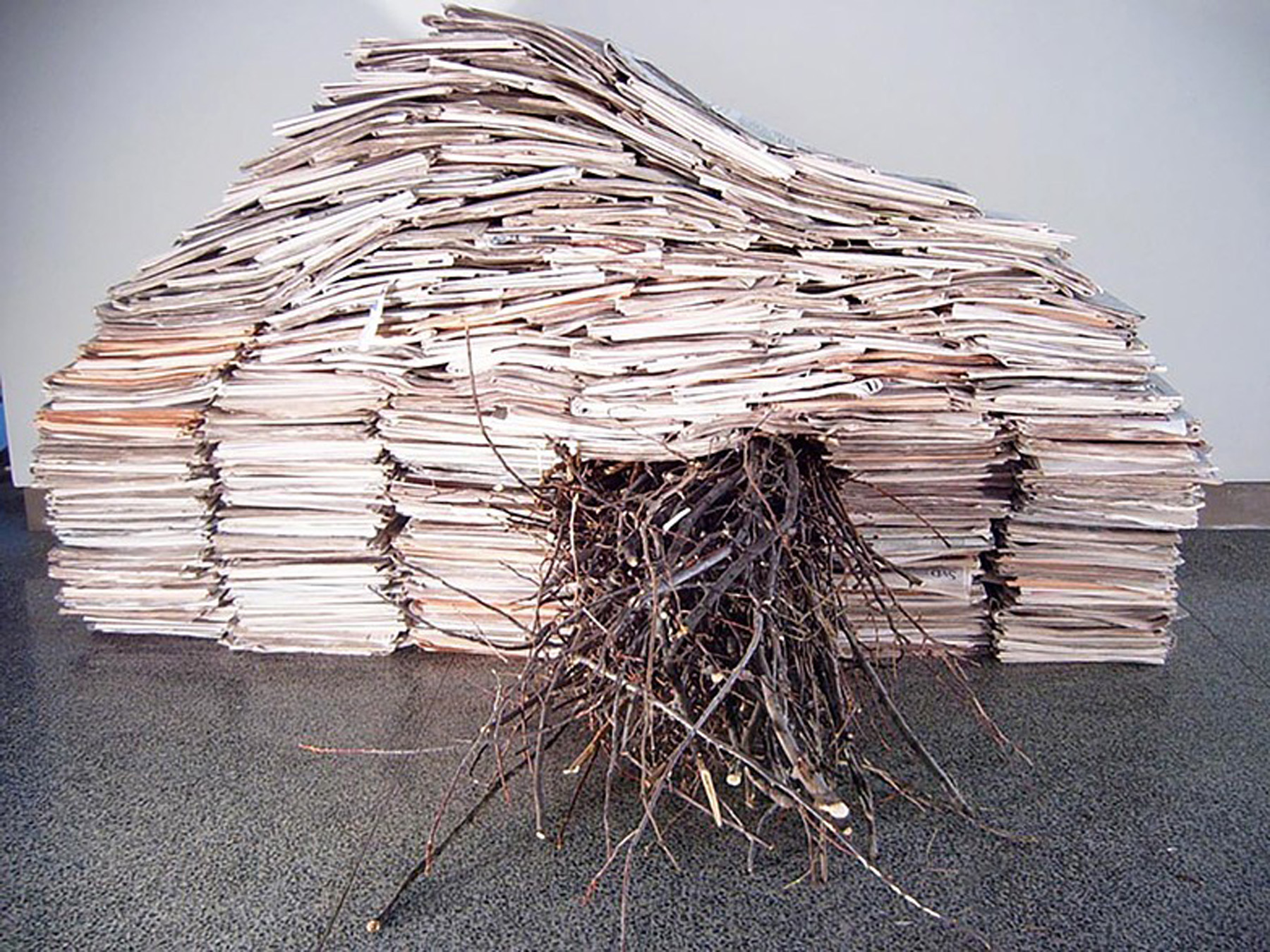 Passage I. Newspapers and sticks. 5.5'x10.2'x6'. 2006