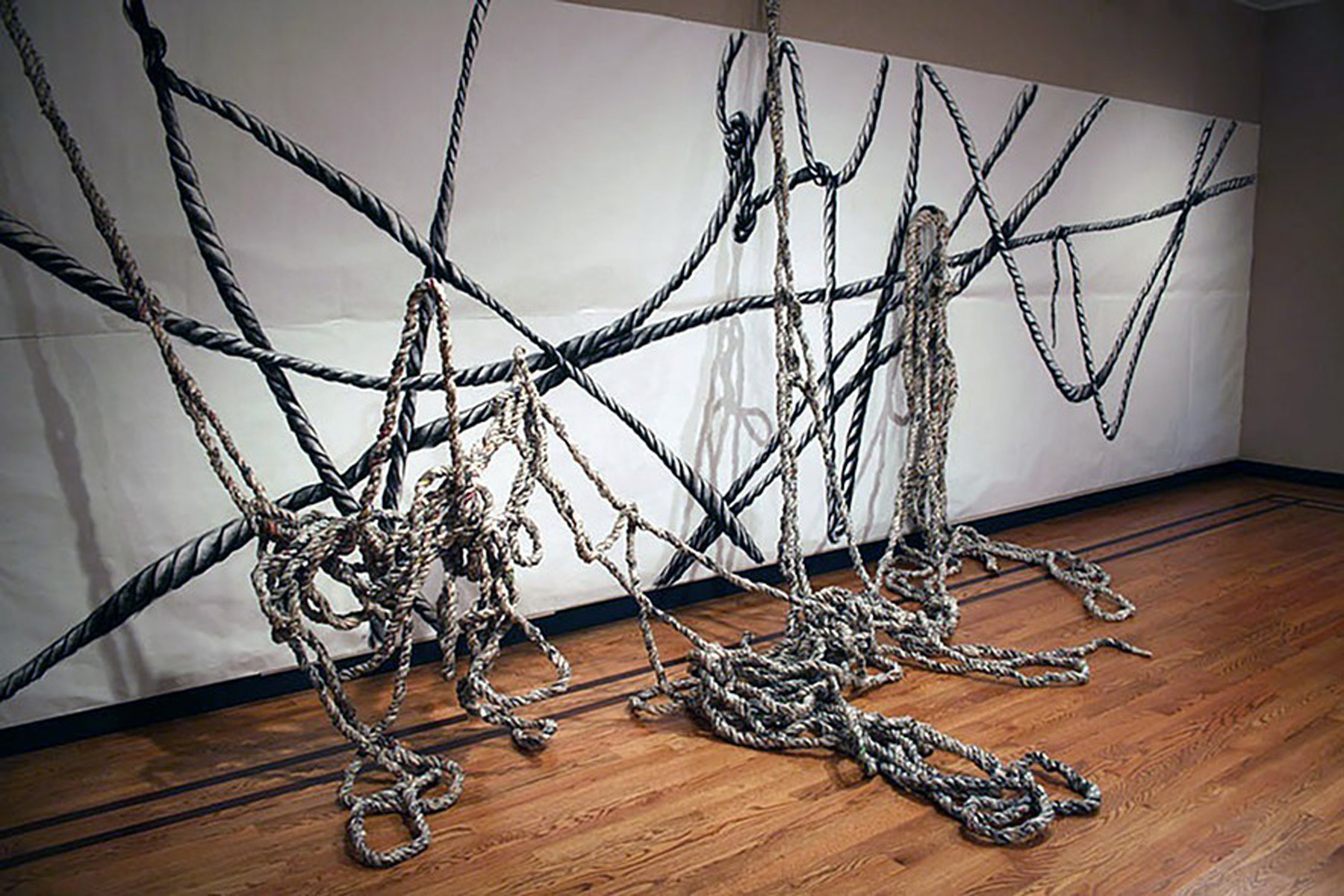 Rope II. Newspapers and wall drawings. Varied dimensions. 2006