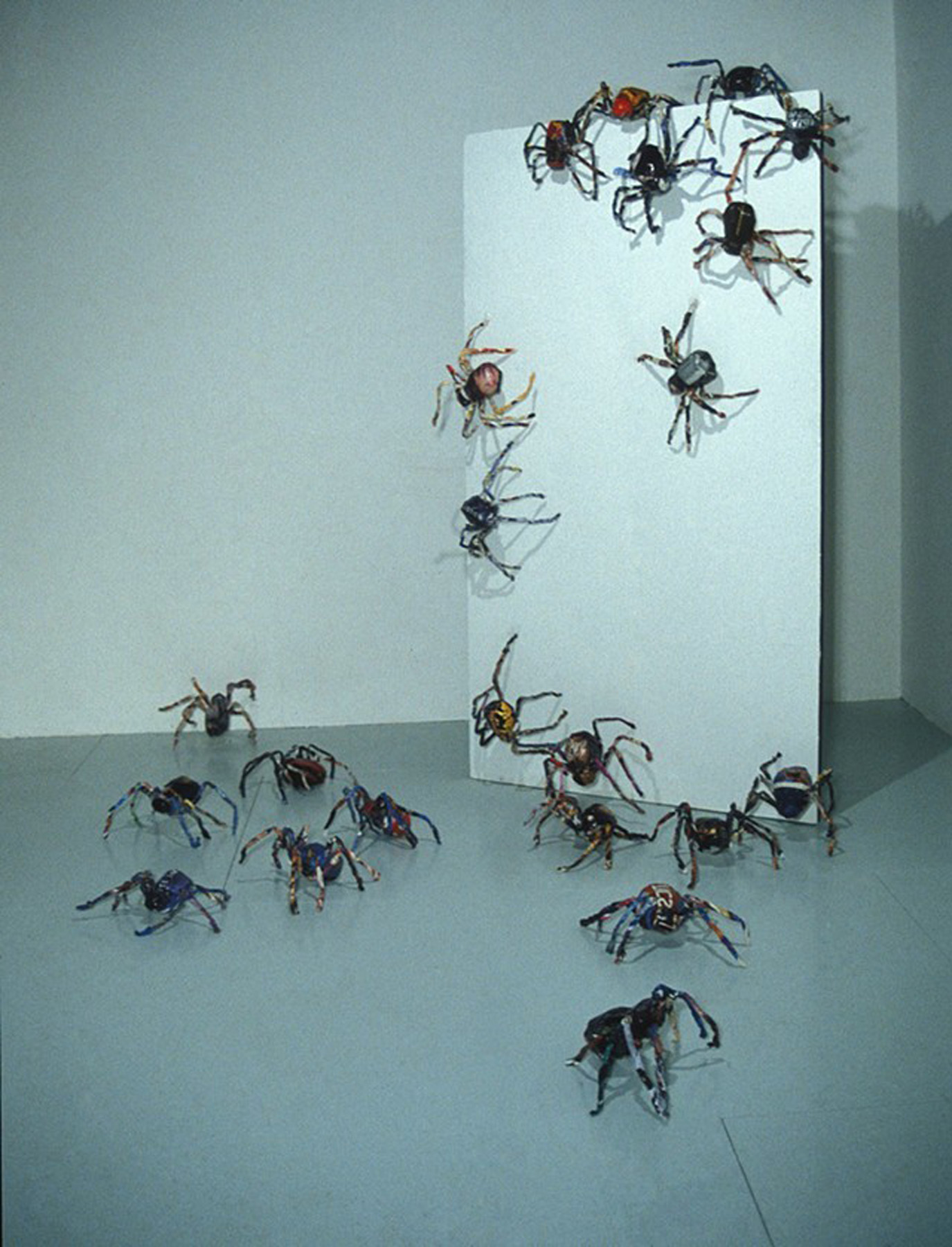 Spiders. Magazine pages and wire. Varied dimension. 2002