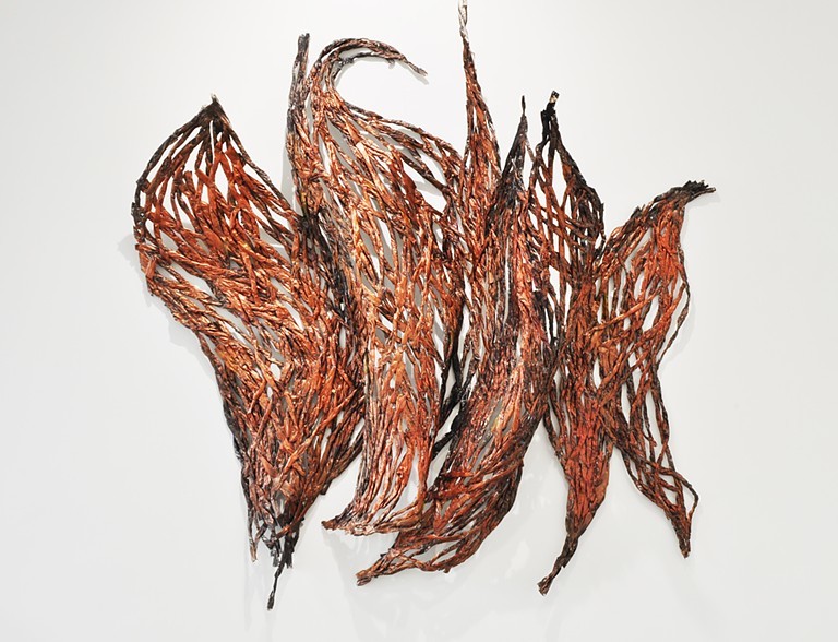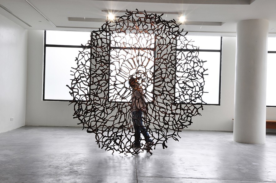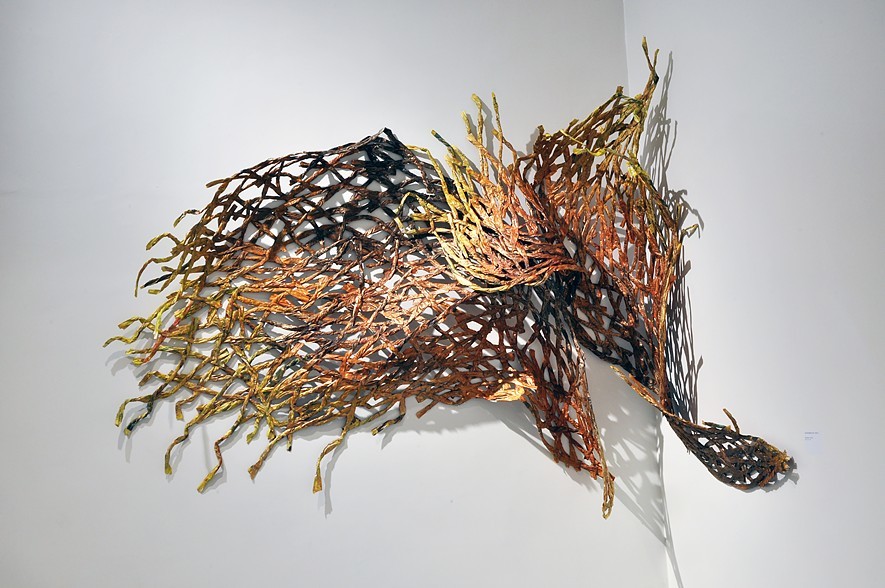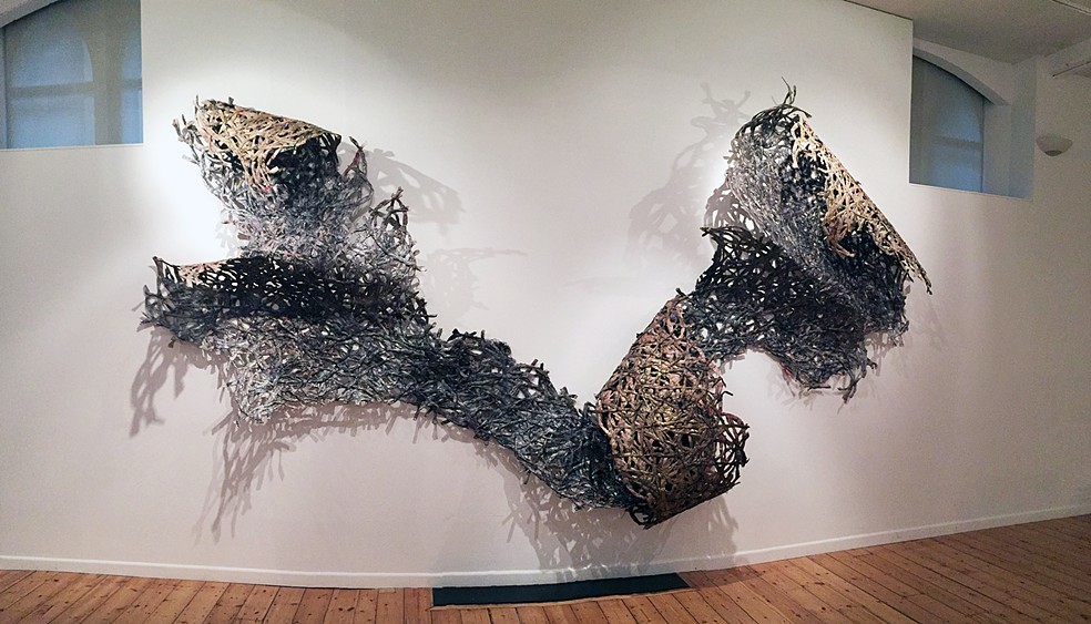 Unleashed. Newspaper, acrylic paint and wire. 144”x 180”x27”. 2017