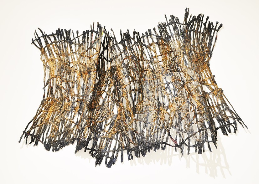 Transitions. Newspapers and acrylic. 100"x120"x12". 2013