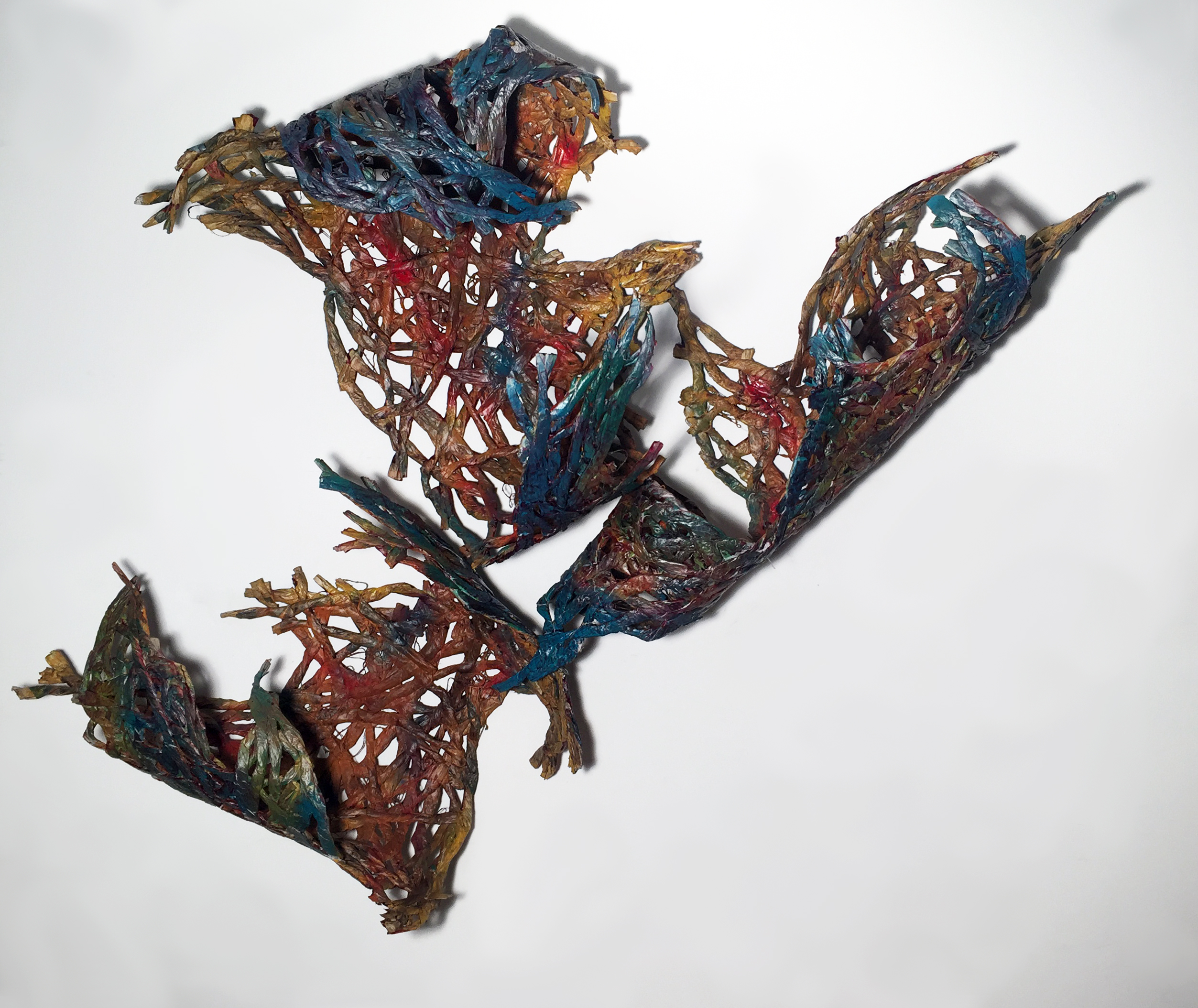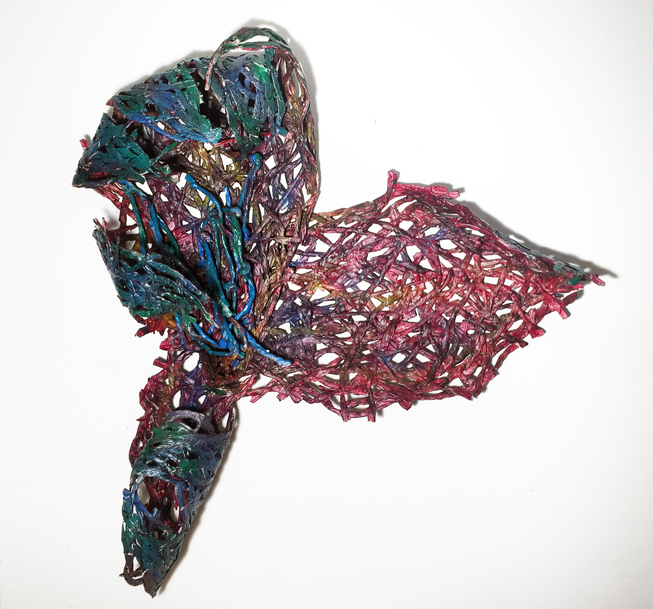 Unravel. acrylic on newspapers. 46"x50"x20". 2019
